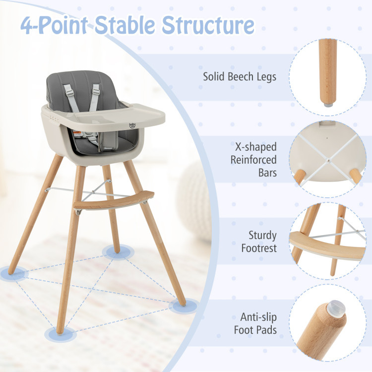 Home > 3-in-1 Convertible Wooden High Chair with Cushion