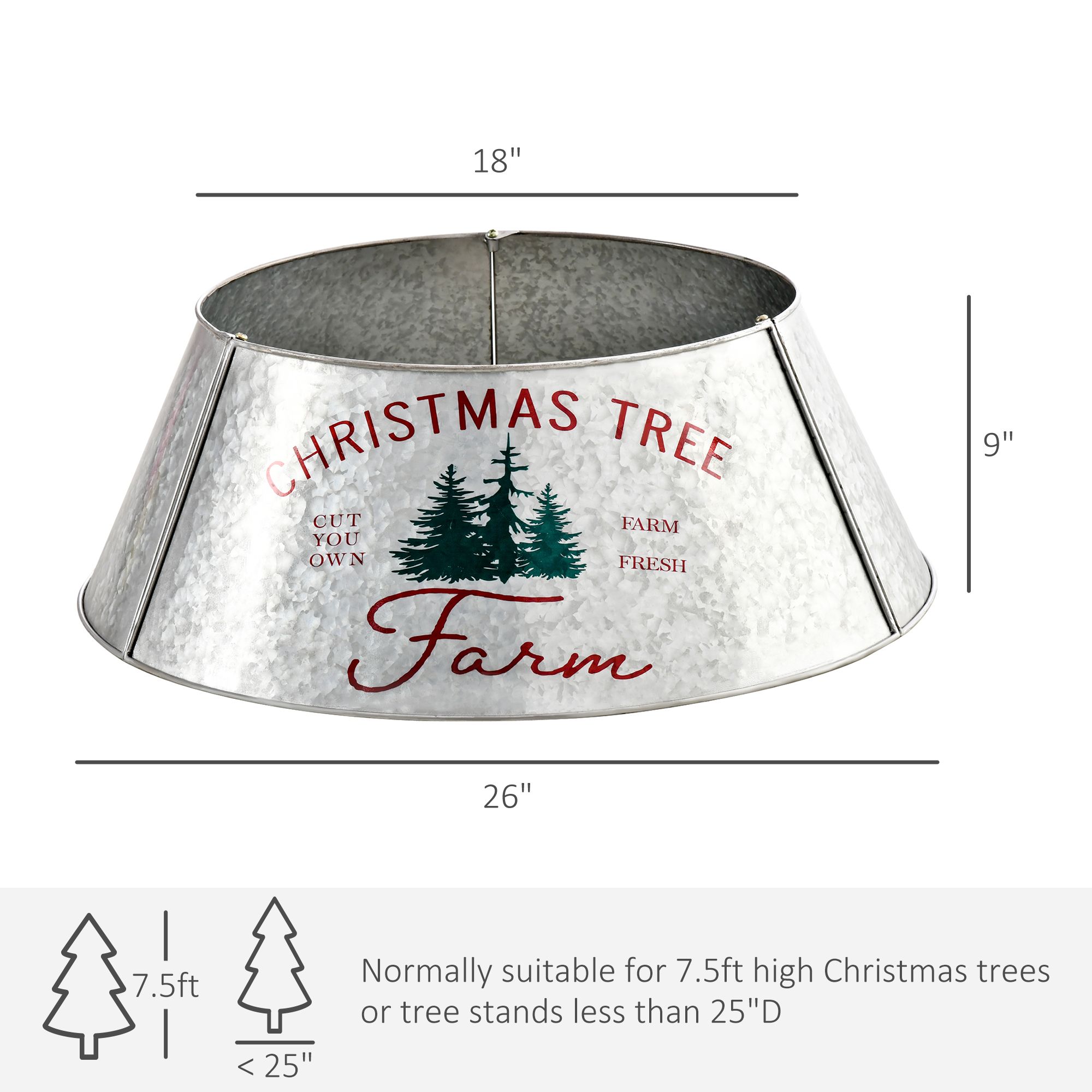 Home > HOMCOM Christmas Tree Collar Steel Tree Ring Skirt Home Xmas Decoration with Christmas Tree Printed, 26" Base, Silver