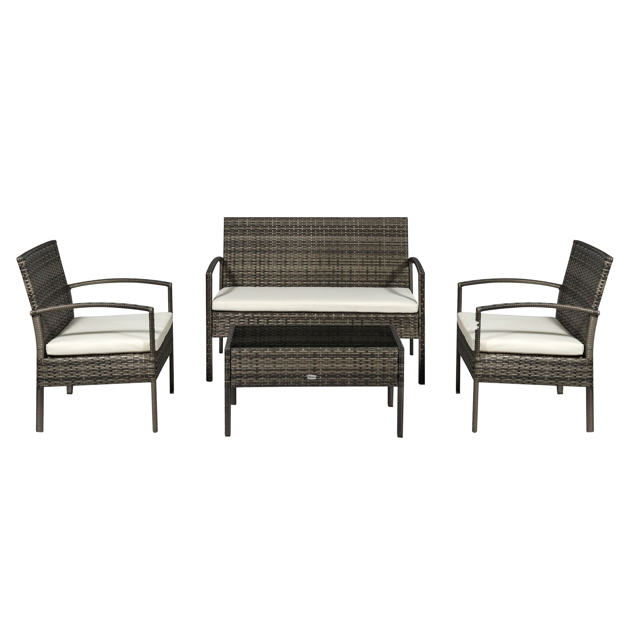 Comfort and style shouldn't be barred from the outside. Turn your balcony, porch, yard, or garden into a sitting space you can enjoy. Outsunny offers an outdoor furniture set with chairs, a couch, and a coffee table. Invite over guests; dine, drink, and enjoy conversation on plush padded seats. Hand-woven, with an all-weather build, the PE rattan makes a statement as a boho accent that's backyard-ready. Get out, get comfy, get Outsunny.