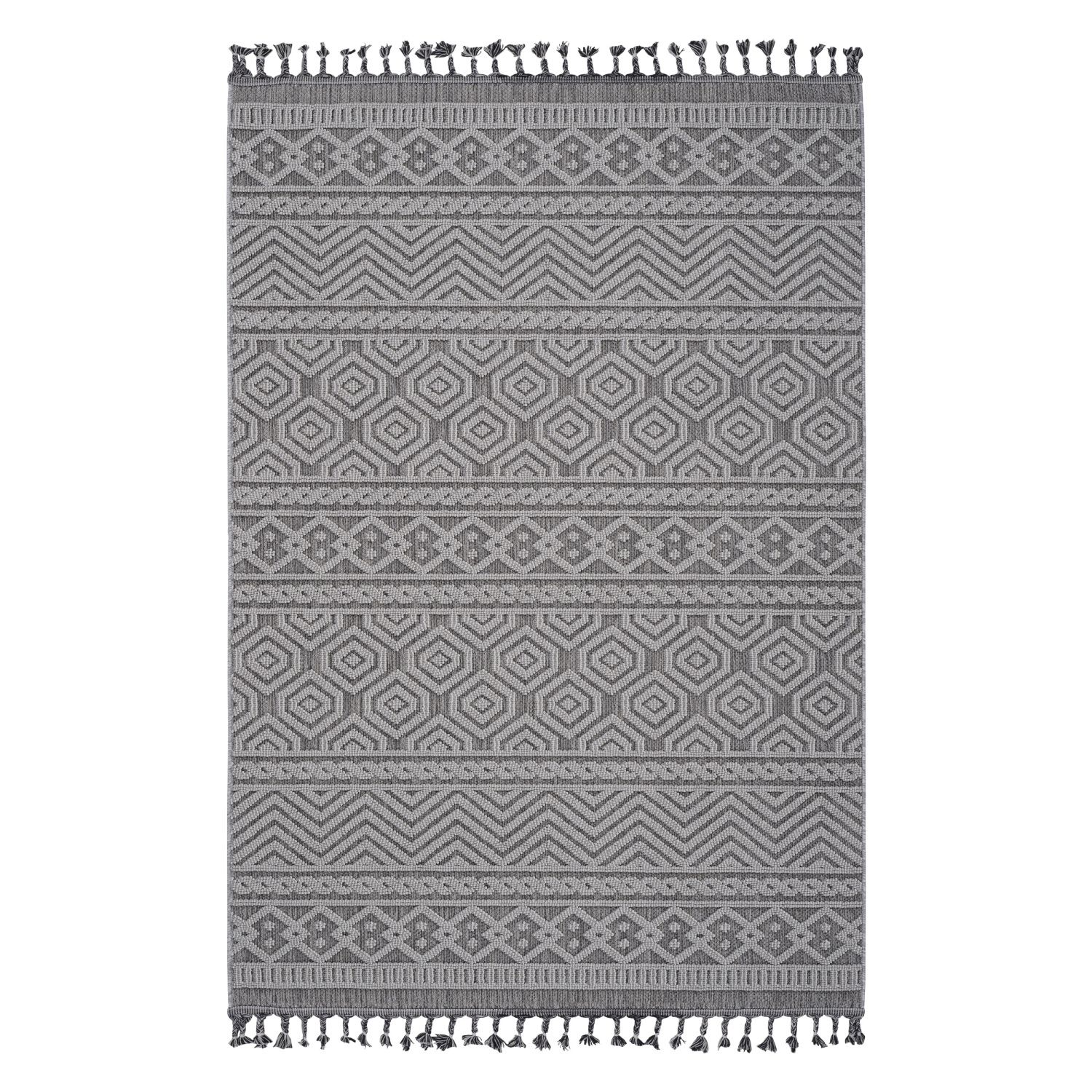 LOOM & LUXE Collection 8X10 Grey/White /Geometric Indoor/Outdoor Area Rug