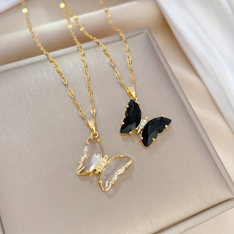 Home > Delicate Zircon Butterfly Pendant Necklace For Banquet Wedding Party Decor Neck Jewelry Ornament Stainless Steel Jewelry
