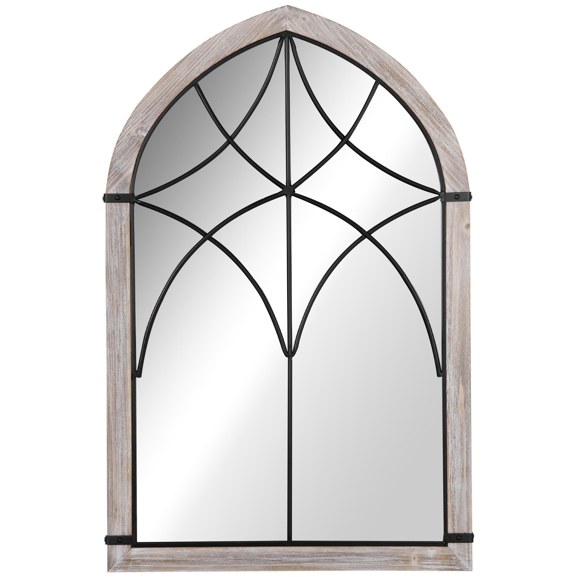 Home > HOMCOM Farmhouse Arch Window Wall Mirror 36.5 x 23.5 Inch Rustic Wood Grain for Living Room Bedroom