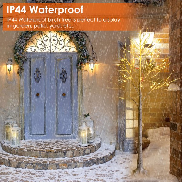lighted birch tree brings nature's beauty as well as romantic atmosphere into your home! With 8 lighting modes and warm white color, this LED birch tree can be used throughout the year by adding different lightweight decorations for your home on various holidays and festivals. Realistic artificial design and flexible branches allow you to DIY it as you desired to decorate your house. IP44 Waterproof performance makes it not afraid of outdoor use. It really is an ideal gift for family, friends, colleagues or anyone who loves gardening decorations.