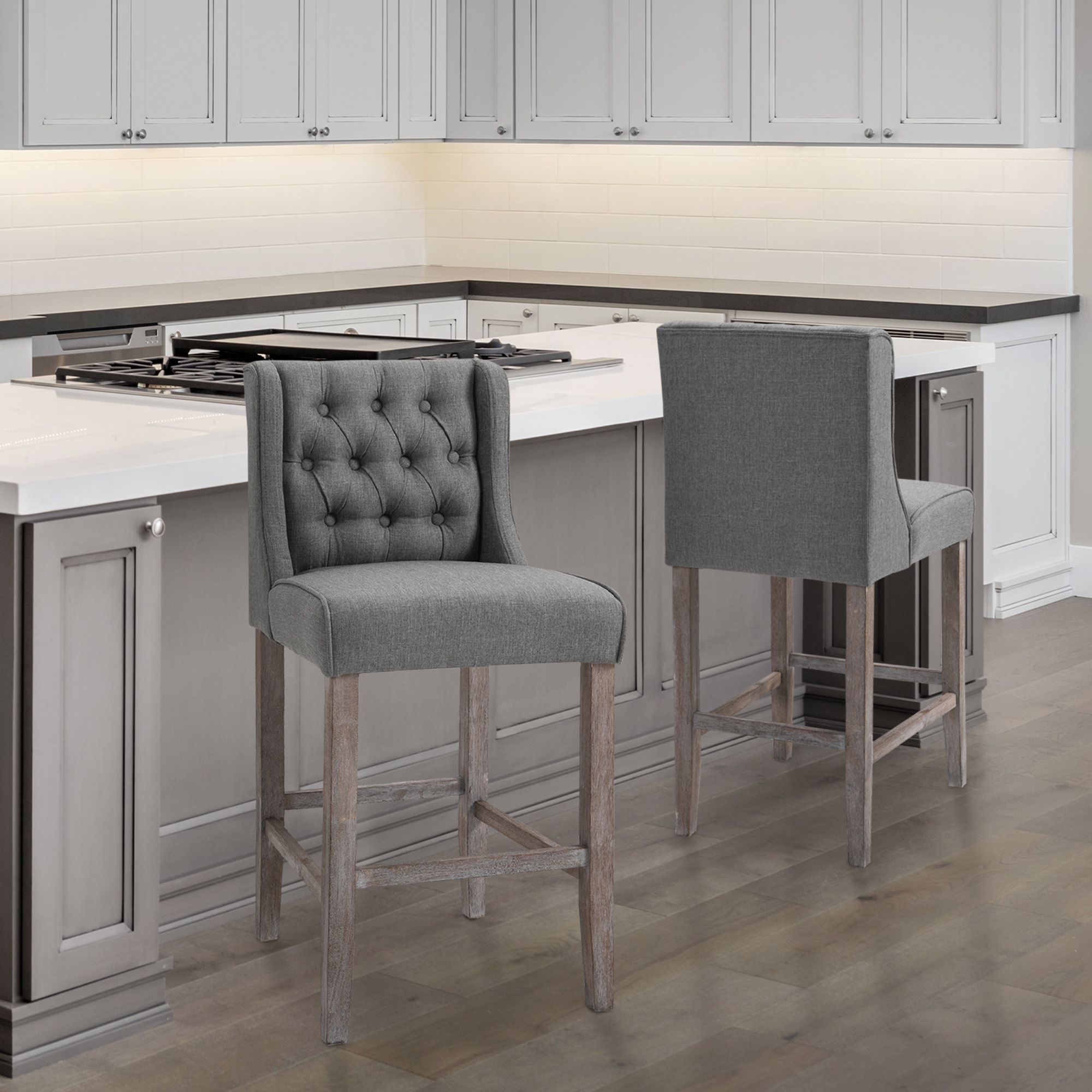 Set of 2 40Inch Button Tufted Bar stools High Counter Dining Height Chairs Grey Set of 2 40Inch Button Tufted Bar stools High Counter Dining Height Chairs Grey Set of 2 40Inch Button Tufted Bar stools High Counter Dining Height Chairs Grey