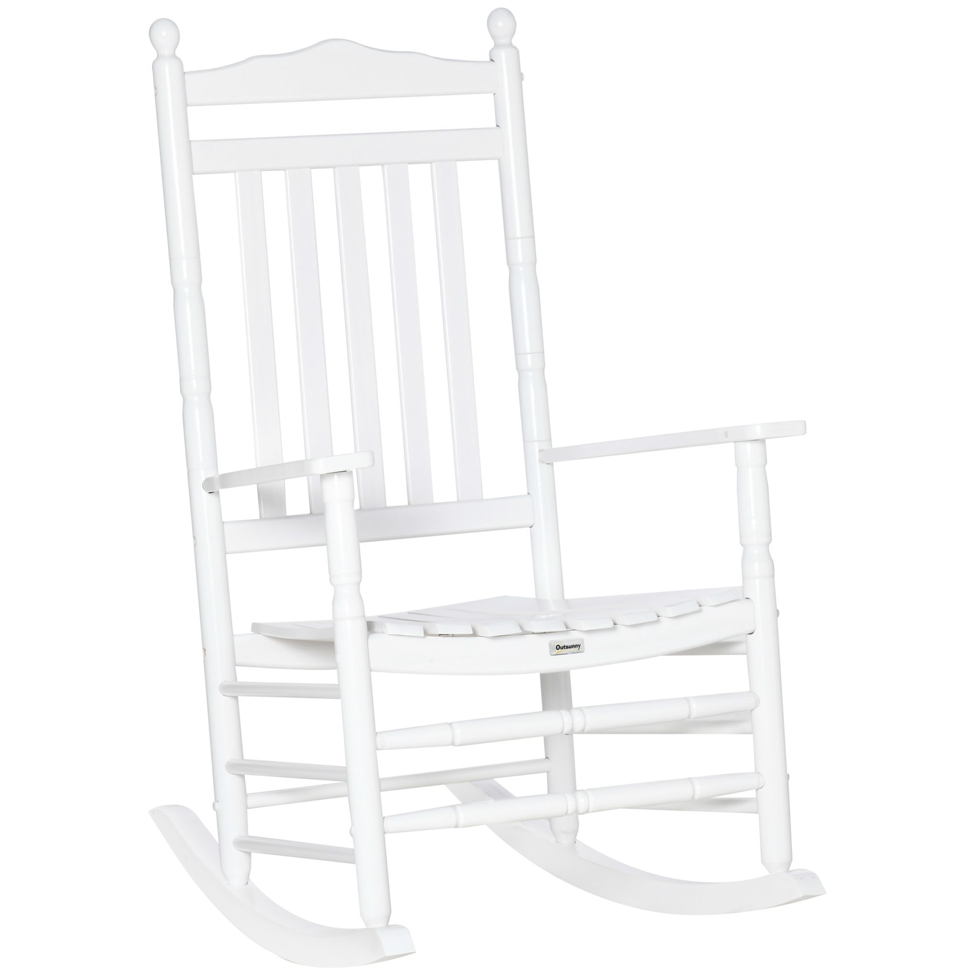 Home > Outsunny Traditional Wooden High-Back Rocking Chair for Porch, Indoor/Outdoor, White
