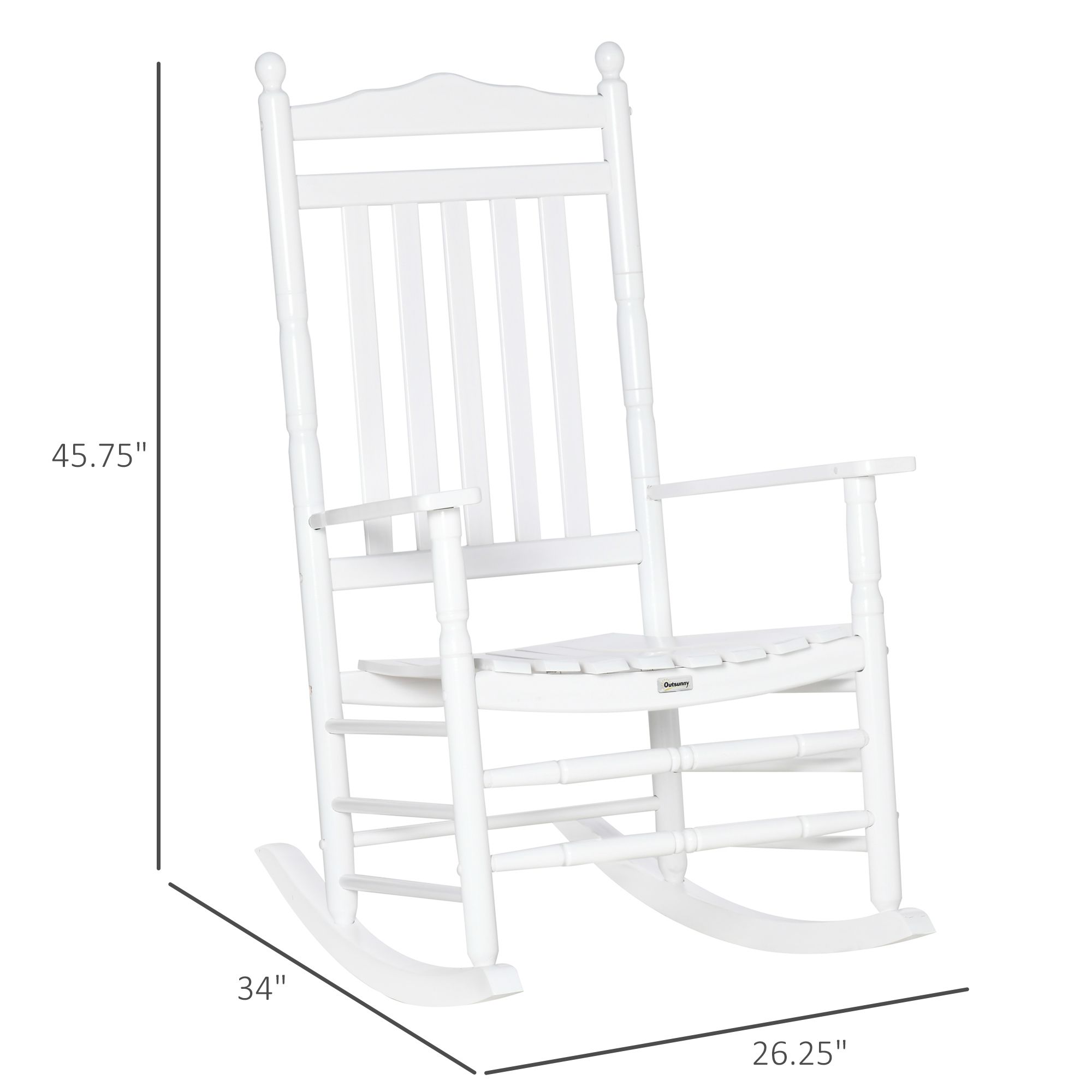 Outsunny Traditional Wooden High-Back Rocking Chair for Porch, Indoor/Outdoor, White